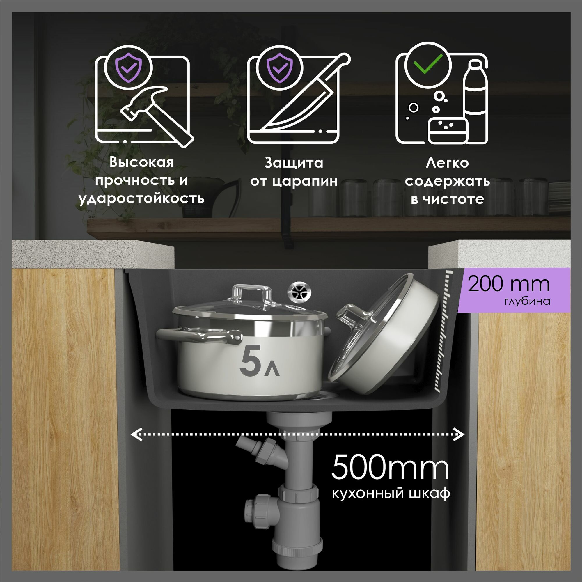Кухонная мойка, раковина, Ника 570, искусственный камень, графит