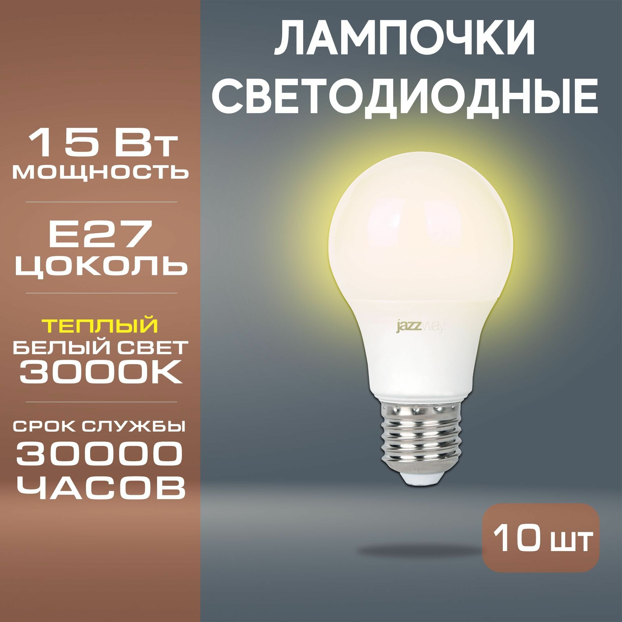 Набор из 10 светодиодных ламп JAZZway PLED-SP A60 15w E27 3000K информация: