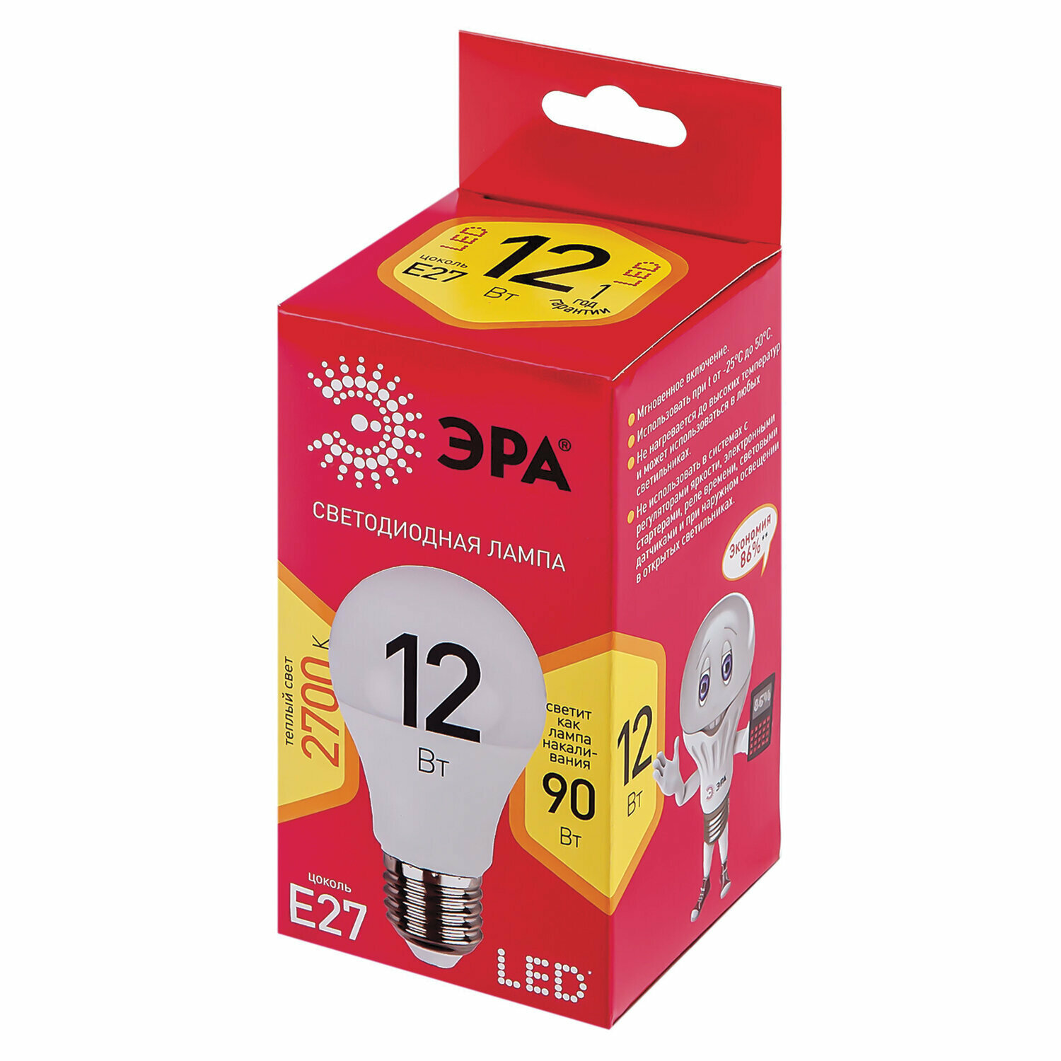 Лампа светодиодная Эра 12, 90 Вт, цоколь Е27, груша, теплый белый, 25000 ч, Led A60-12W-3000-E27