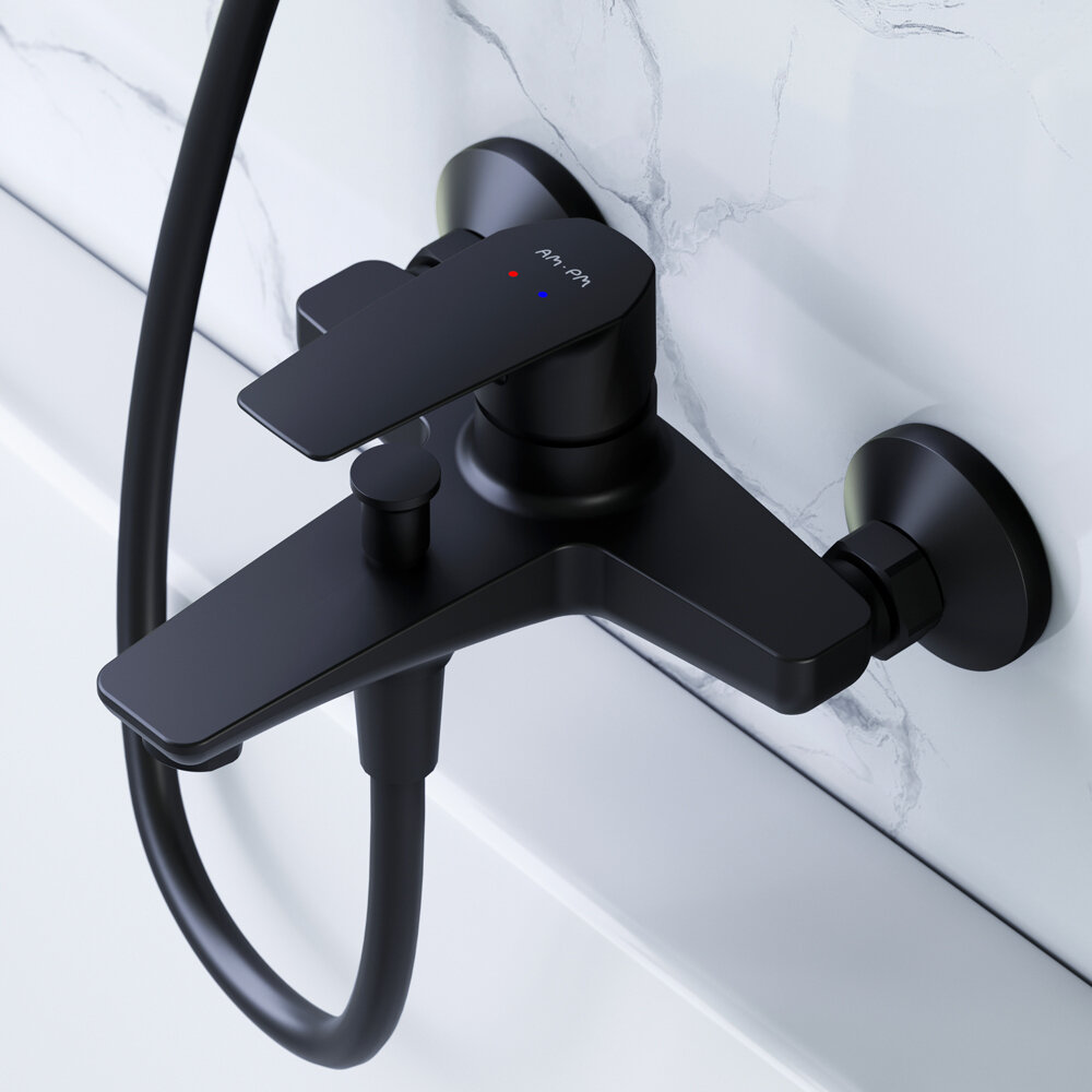 10 цен на Смеситель для ванны AM.PM Hit черный, керамический картридж Soft Motion, покрытие Everlast, латунь, Гарантия 10 лет