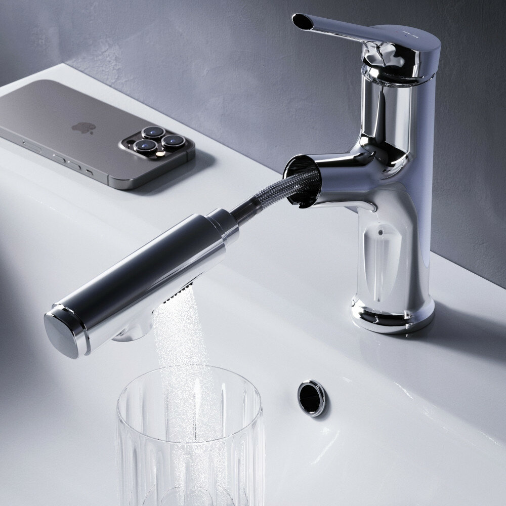 Смеситель для раковины в ванную AM.PM X-Joy S хром, вытяжной излив 140 мм, с режимом "душ", керам.картридж Soft Motion 14 990 ₽