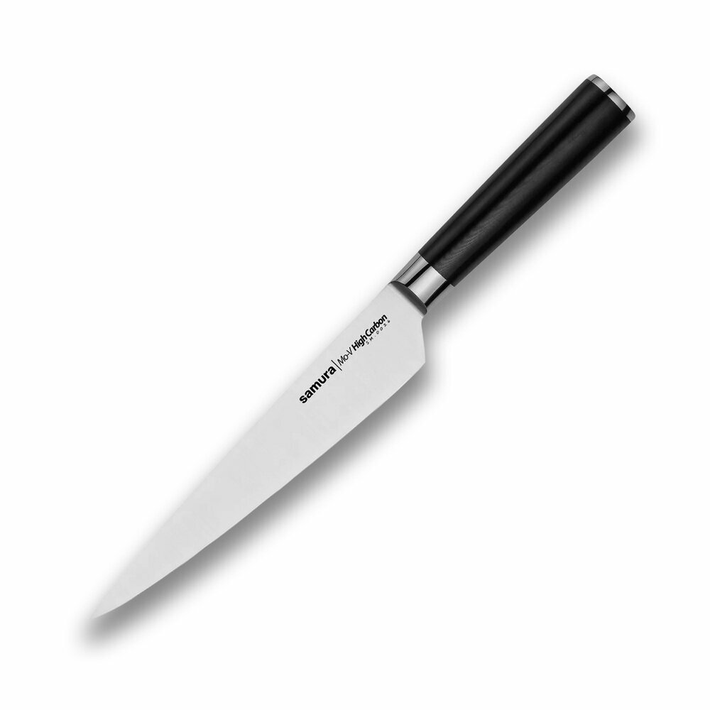 Отзывы на Нож кухонный универсальный из высокоуглеродистой нержавеющей стали, 19.2 см, композитная рукоять, черный, серия MO-V High Carbon, Samura, SM-0026/K