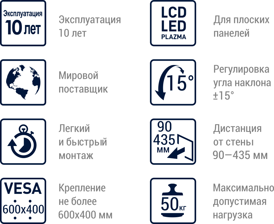 Отзывы на Кронштейн настенный MART 505SL 32-65" (наклон -15°/+15°, вылет 90-435 мм, до 50 кг, черный)