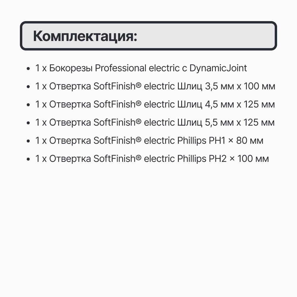 | Отвертки подробно | SL3x100, SL4.5x125, SL5.5x125, PH1x80, PH2x100 |