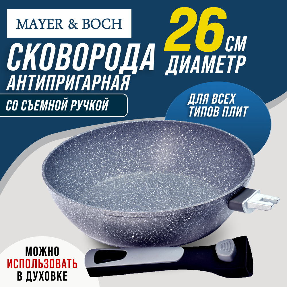 Сковорода MAYER&BOCH 26см, мраморное антипригарное покрытие, съемная ручка 40410 информация:
