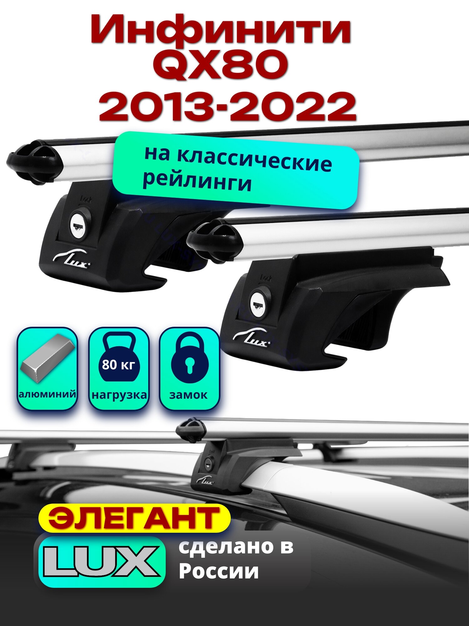 Багажник на крышу Инфинити QX80 2013-2022 на рейлинги, дуги аэро-классик, LUX элегант информация: