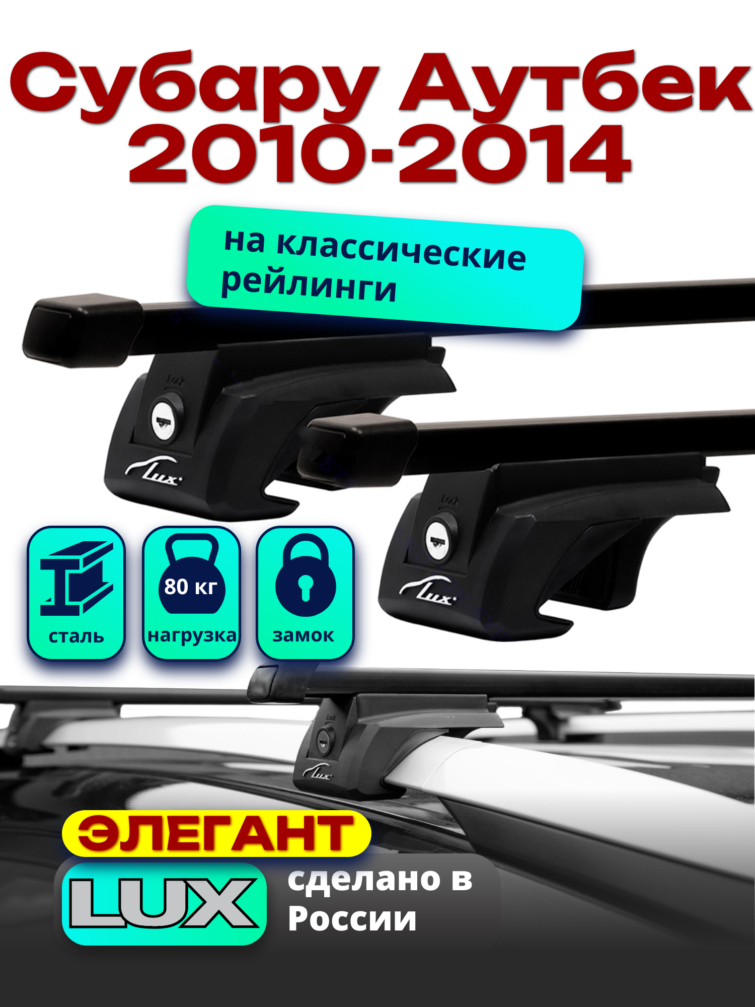 Багажник на крышу Субару Аутбек 2010-2014 на рейлинги, черный, прямоугольные дуги, LUX элегант информация:
