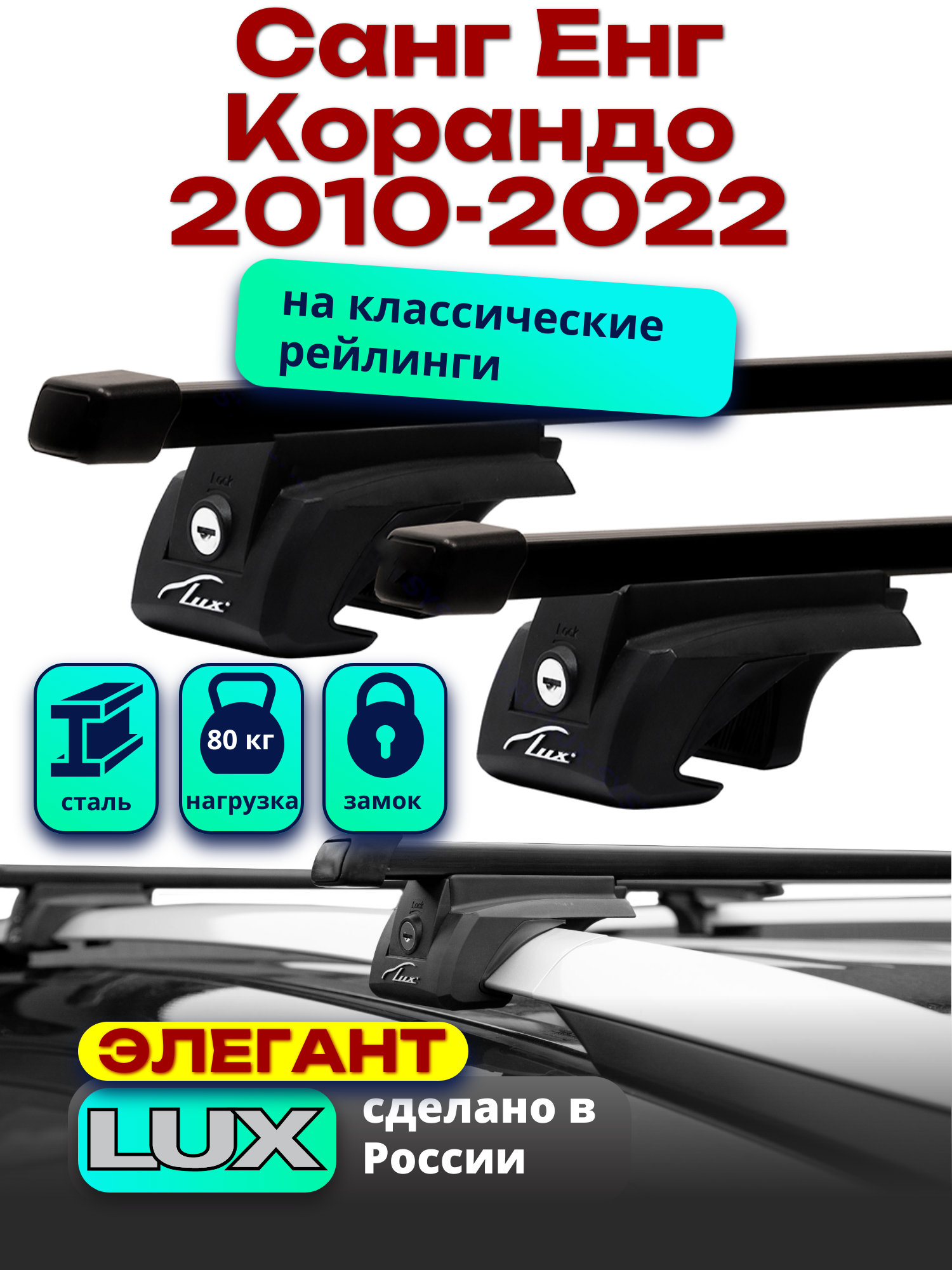 Багажник на крышу Санг Енг Корандо 2010-2022 на рейлинги, черный, прямоугольные дуги, LUX элегант информация: