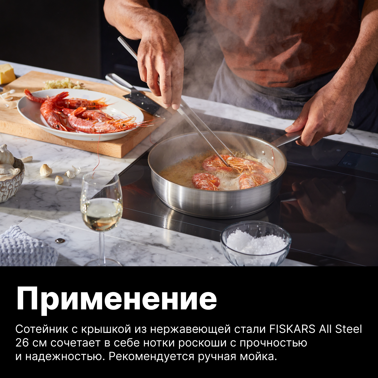 10 цен на Сотейник с крышкой из нержавеющей стали 26 см All Steel Fiskars (1064746)