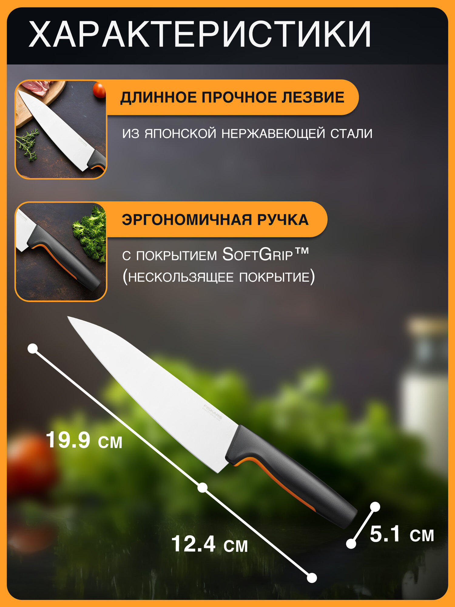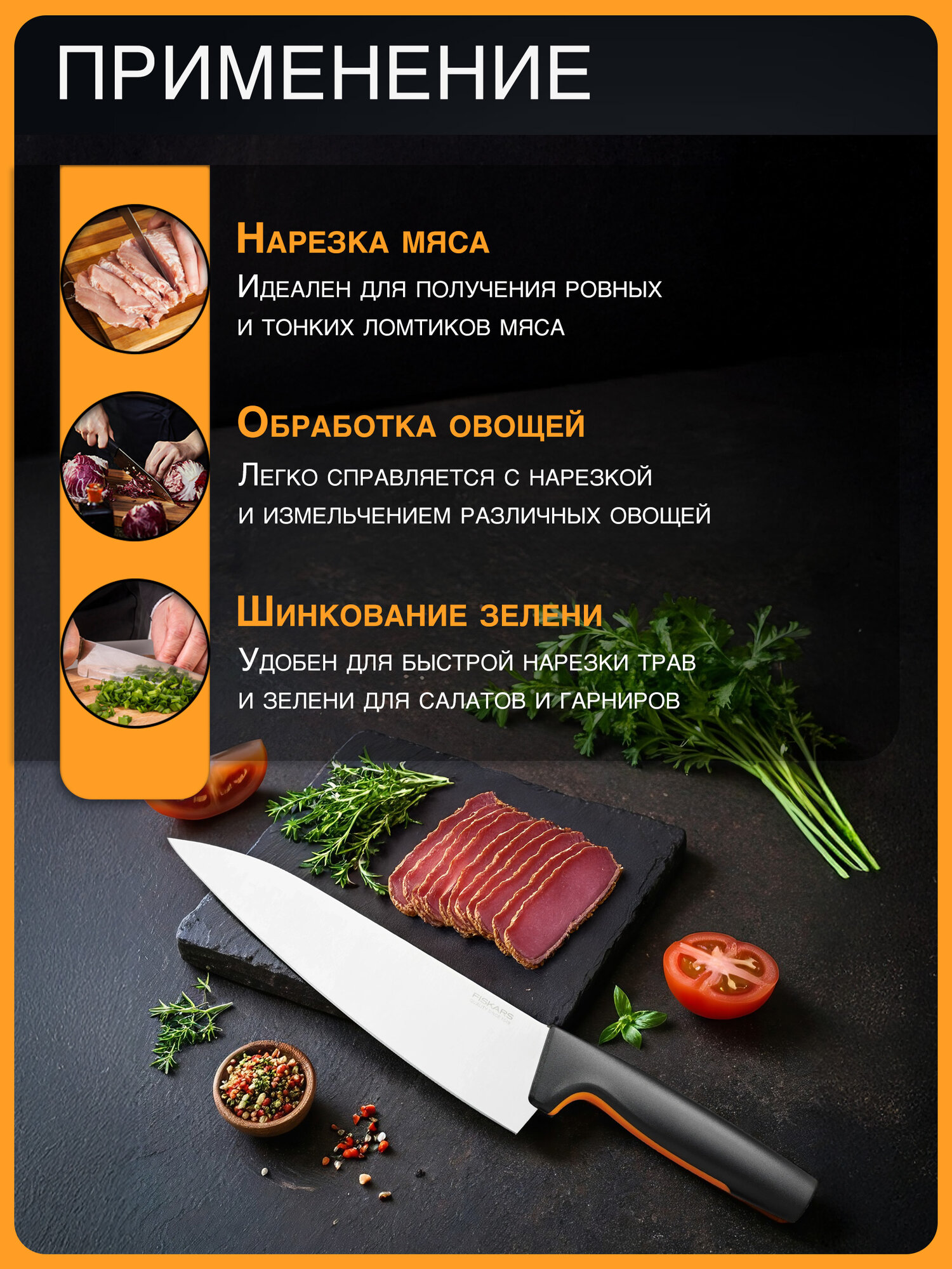 Отзывы на Нож поварской большой 20 см Fiskars Functional Form черный (1057534)