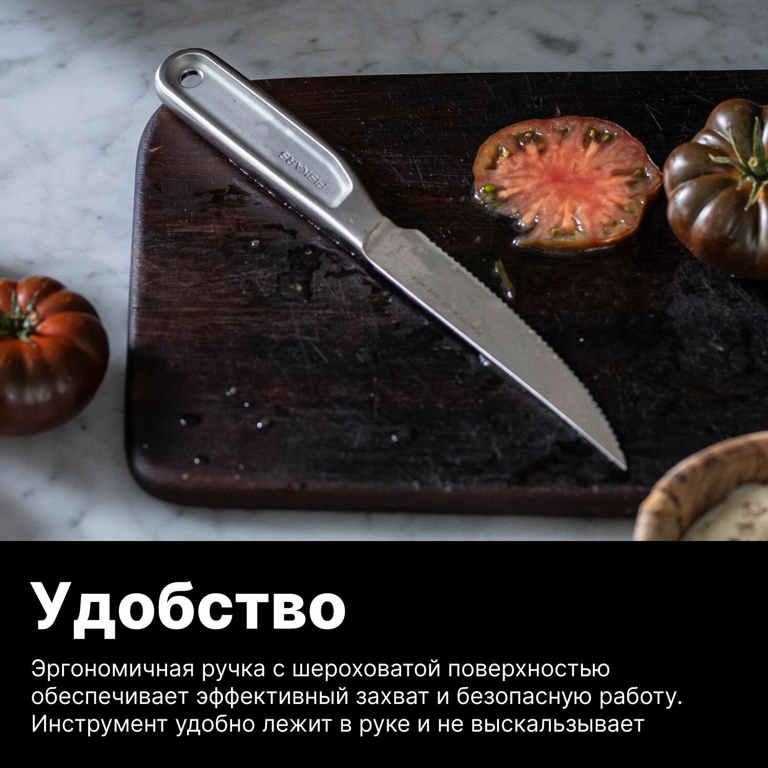 Отзывы на Нож для томатов FISKARS All Steel 12 см цельнометаллический (1062888)