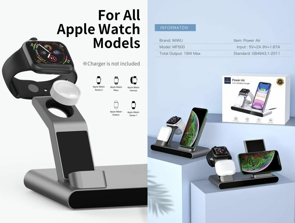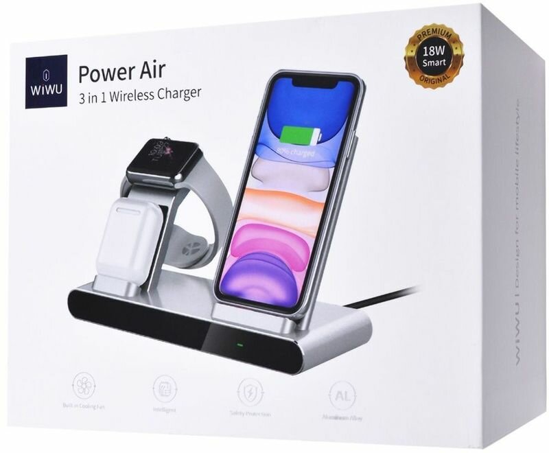 Беспроводное зарядное устройство WiWU Power Air 3 in 1 Сharger (Grey) информация: