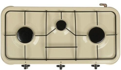 | Дополнительная информация | номинальная мощность: 2,2×2+1,0кВт; номинальный расход газа: 393 г/ч; максимальная нагрузка на конфорку - 10 кг; номинальное давление газа: 3 кПа; штуцер с возможностью двухстороннего подключения газового шланга; подсоединение газовой плиты к газовому баллону должно осуществляться при помощи регулятора давления газа (редуктора), резинового шланга и хомута; запрещено подключать баллон с газом напрямую к плите без регулятора давления газа (редуктора); газовый шланг, регулятор давления газа (редуктор) и баллон в комплект поставки не входят |