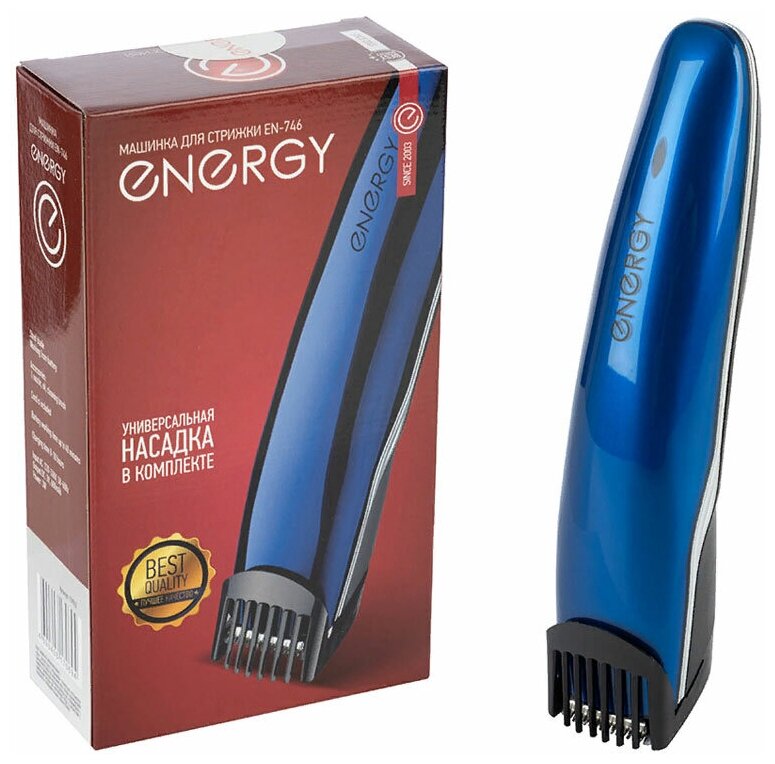10 цен на Машинка для стрижки Energy EN-746, 3 ВТ, нержавеющая сталь, автономная, синий