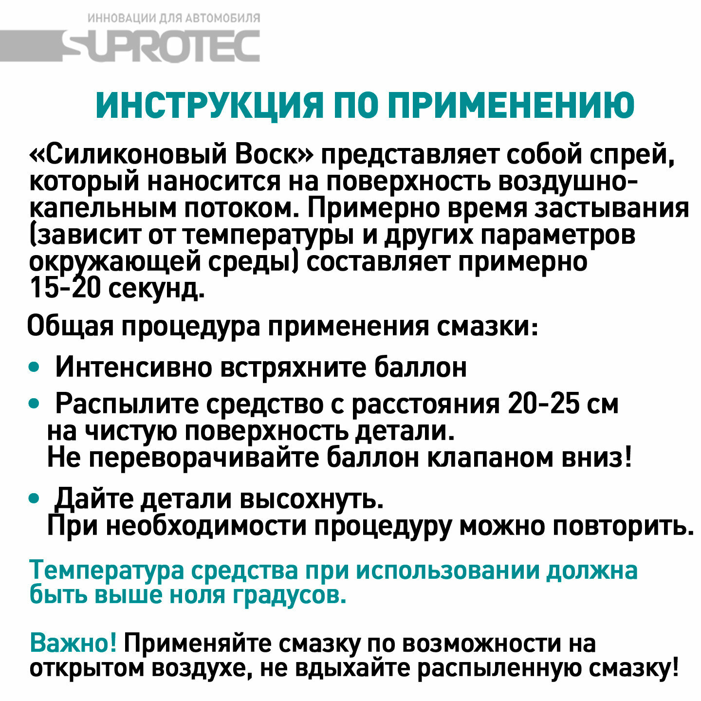 Силиконовая смазка спрей Супротек Апрохим Силиконовый Воск, антискрип, 200 мл информация: