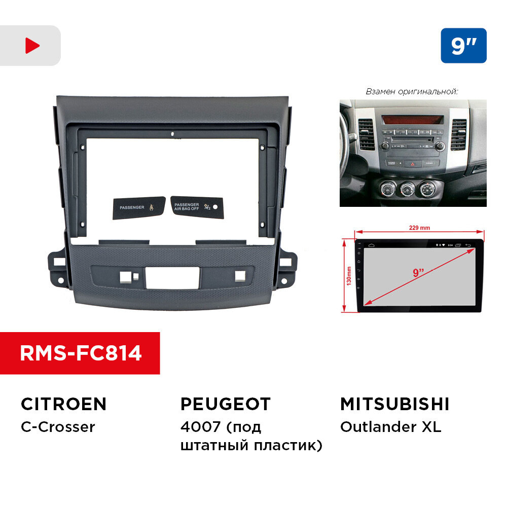 Incar RMS-FC814 | 9" переходная рамка UMS MITSUBISHI Outlander 2006-2013, Citroen C-Crosser, Peugeot 4007 2007-2012 (под штатный пластик)