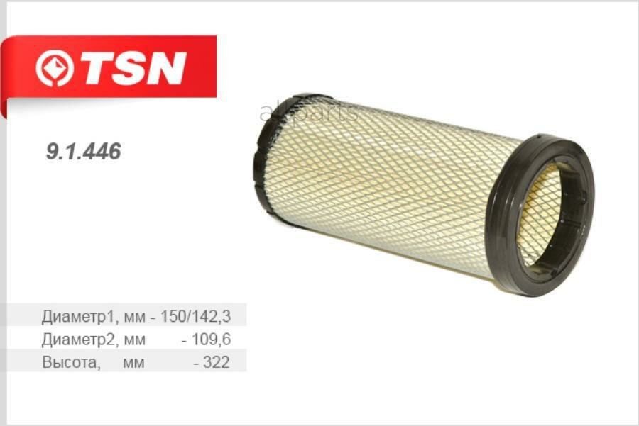 10 цен на TSN 9.1.446 фильтр воздушный! вставка D150/142.3 d109.6 H322\лиаз 5256 5292 (дв. Caterpillar 3116 3126E)