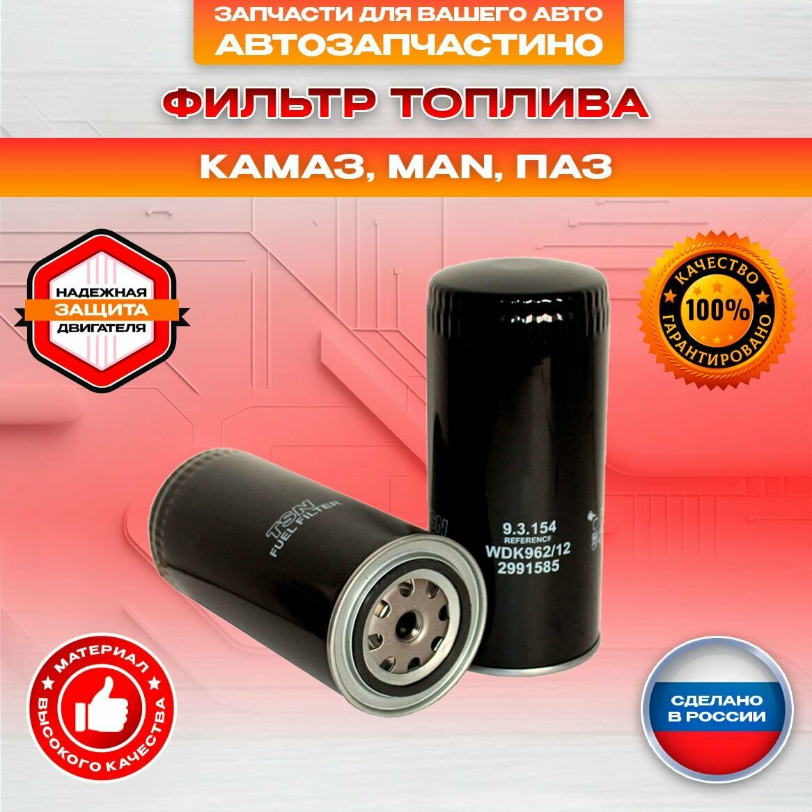 10 цен на Фильтр топливный КАМАЗ дв. MAN-Deut, ГАЗ дв. Д-245 Д-260 Евро 3, ПАЗ-32053 Евро 3, IVECO 2991585 WDK96212