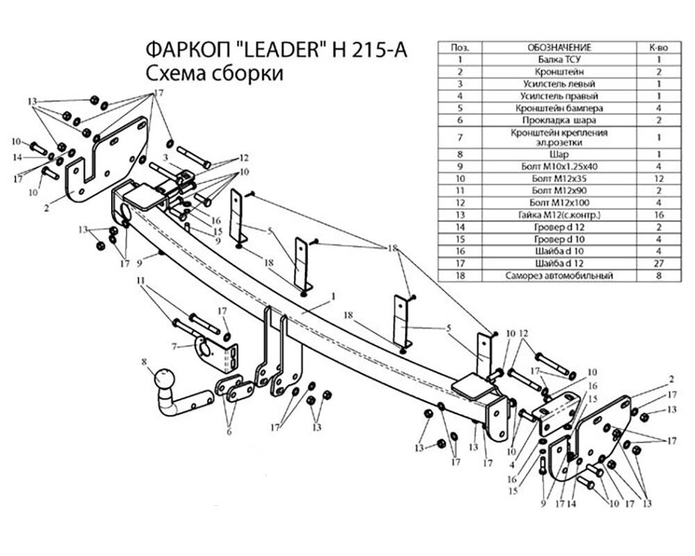 10 цен на Фаркоп Лидер Плюс на Хендай Санта Фе 2006-2012, арт: H215-A-2