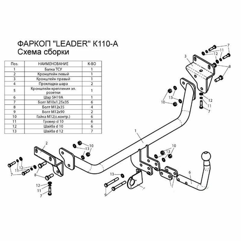 10 цен на Фаркоп Лидер Плюс на Киа Сид хетчбек 2007-2012, арт: K110-A-2
