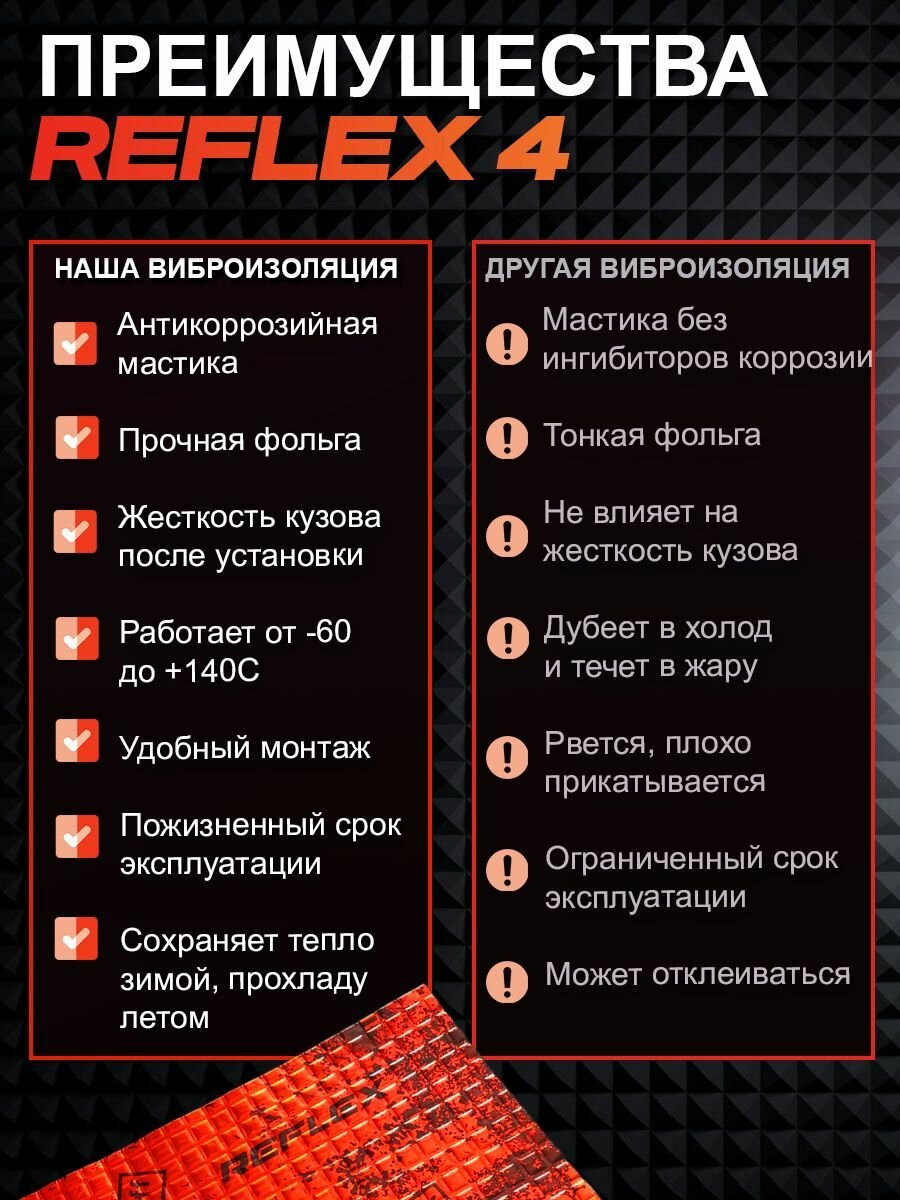Отзывы на Виброизоляция Шумофф Рефлекс 4 - 14 листов. Размер 23*37,5см, толщина 3,6 мм. Шумоизоляция для дверей потолка пола багажника канализационных труб ванн раковин подоконников