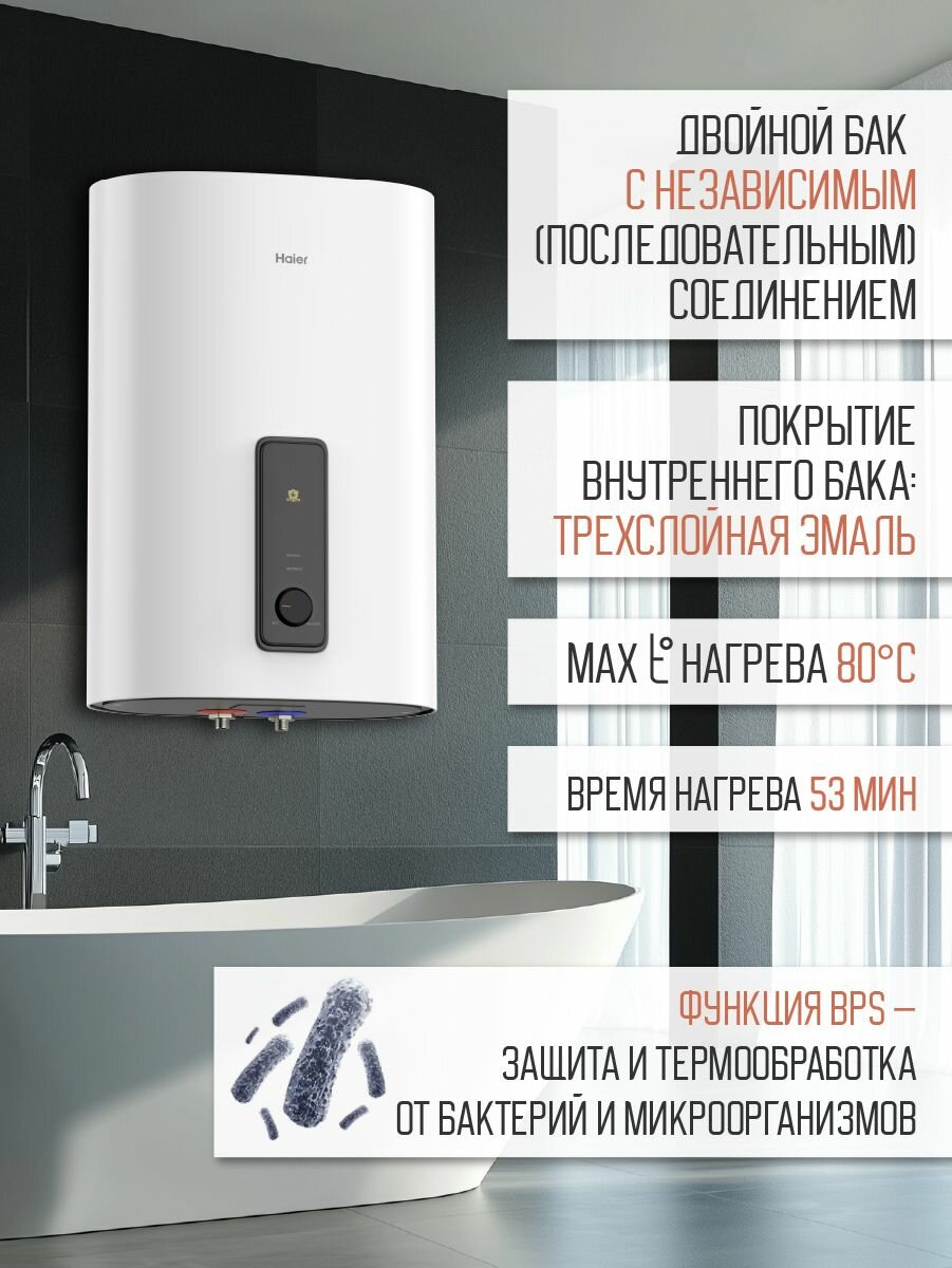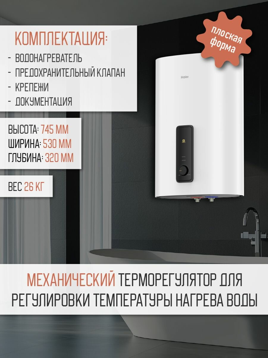 Водонагреватель HAIER ES50V-F3 накопительный плоский настенный электрический (50 литров, 3 кВт) информация: