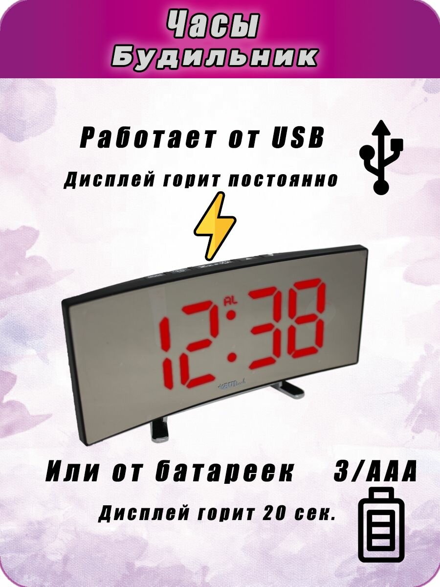 Электронные часы с будильником и термометром BVItech BV-412RMK, черный/красный