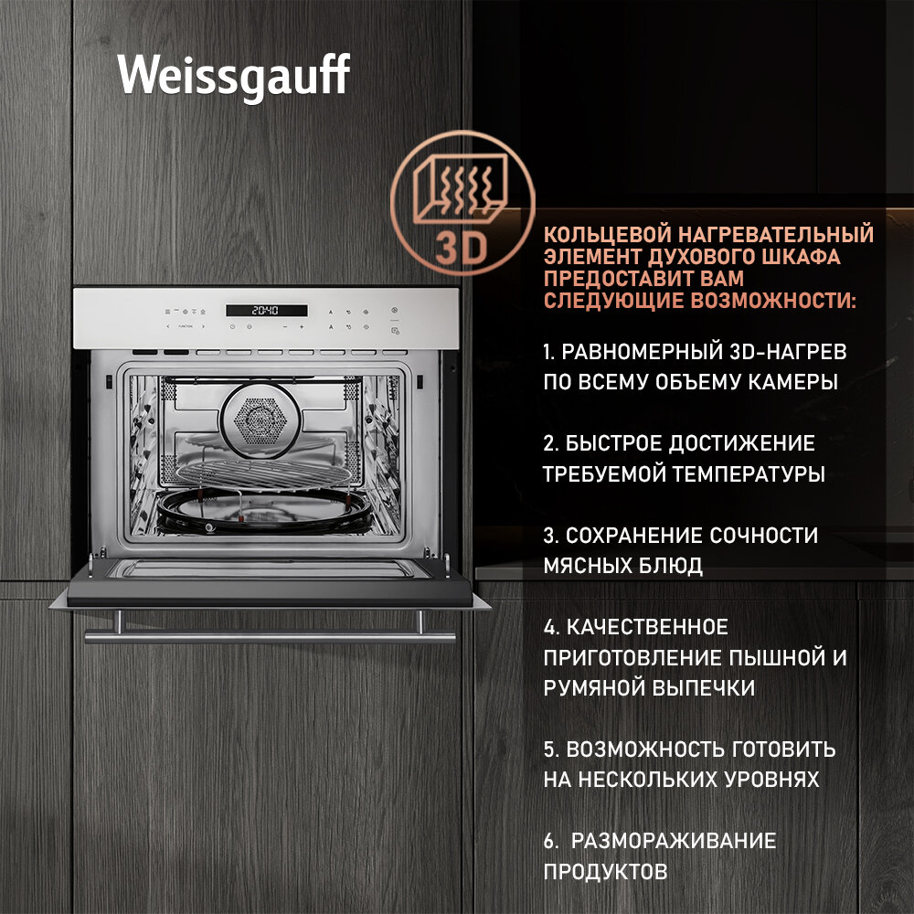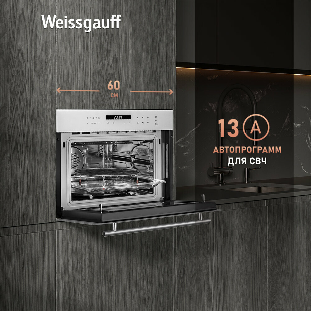 Встраиваемый компактный духовой шкаф с СВЧ Weissgauff OE 442 W 61 490 ₽