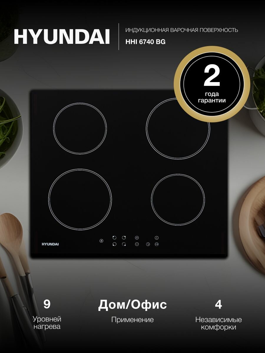 Отзывы на Индукционная варочная поверхность Hyundai HHI 6740 BG, Автозакипание, сенсорное управление,9 уровней мощности, таймер,4 вентилятора охлаждения, металлический корпус, скошенный передний край рамки, черный
