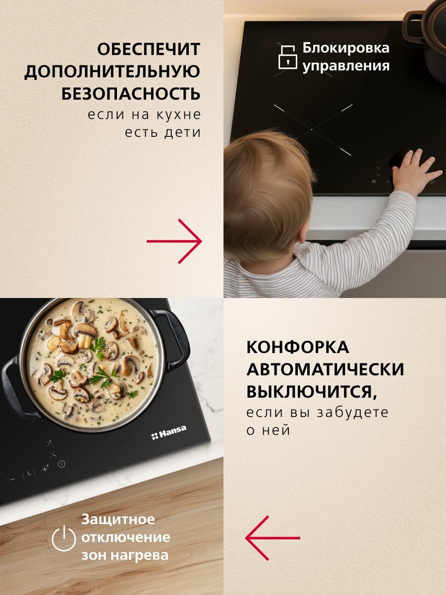 Отзывы на Индукционная варочная панель Hansa BHI68302, стеклокерамическая поверхность, блокировка от детей, таймер, функция Booster, автоотключение, индикация остаточного тепла, черная