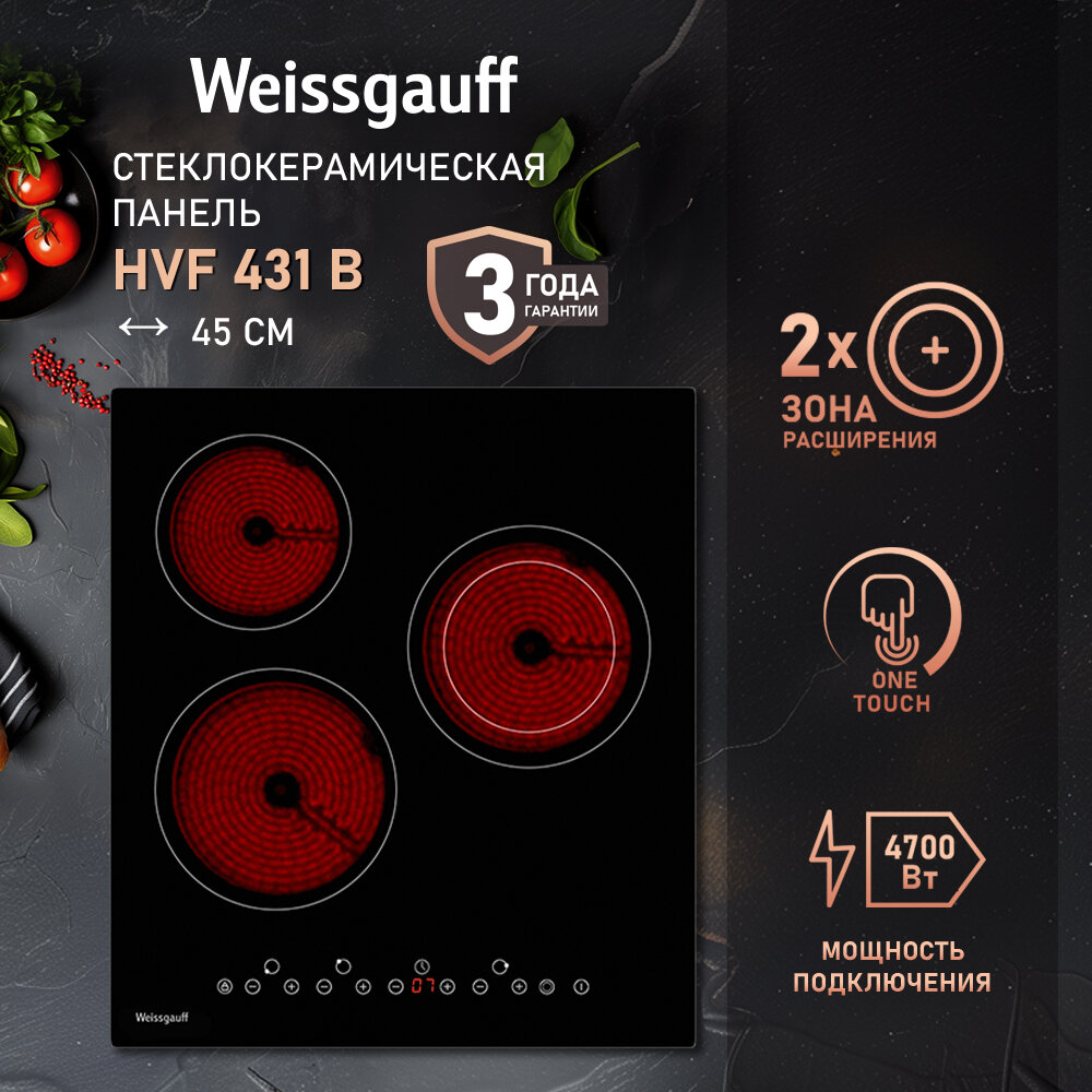 Варочная панель WEISSGAUFF HVF 431 B, электрическая, черный 23 870 ₽
