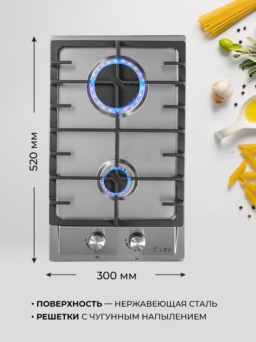 LEX Варочная поверхность LEX GVS 320 IX газовая, нержавеющая сталь 5 790 ₽