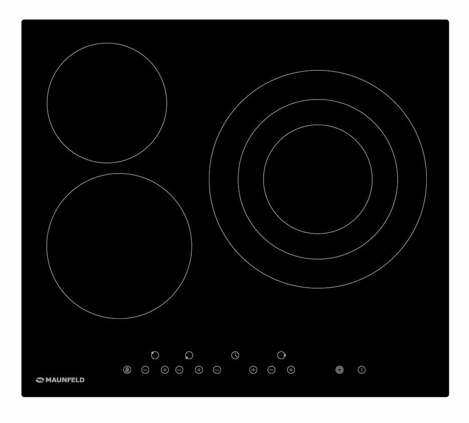 Варочная поверхность Maunfeld EVCE.593.T-BK черный, независимая установка, материал поверхности стеклокерамика, электрических конфорок 3 (УТ000008326)