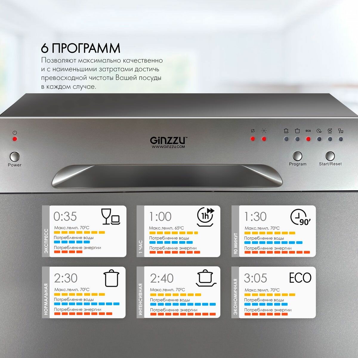 Посудомоечная машина Ginzzu DC282 компактная, серебро, 8 комплектов, средство 3в1 информация: