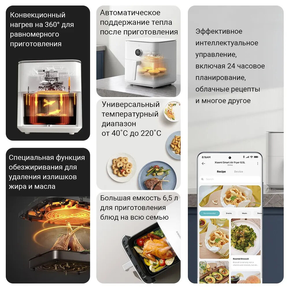 Аэрогриль Xiaomi Smart Air Fryer 6.5L, фритюрница (MAF10), меню на русском языке, белый, EU