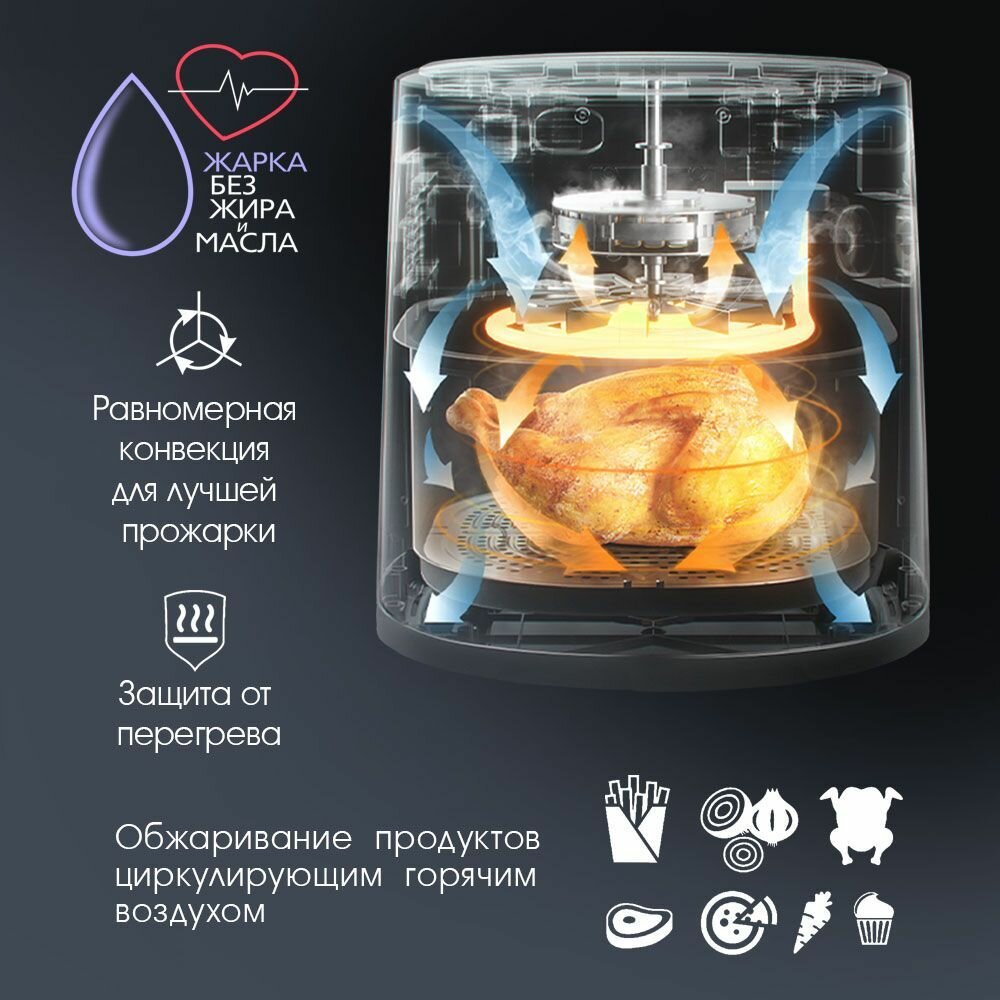 Аэрогриль Аэрогриль электрический 7 литров, с сенсорной панелью, 2400 Вт аэрогриль электрический, черный, серебристый