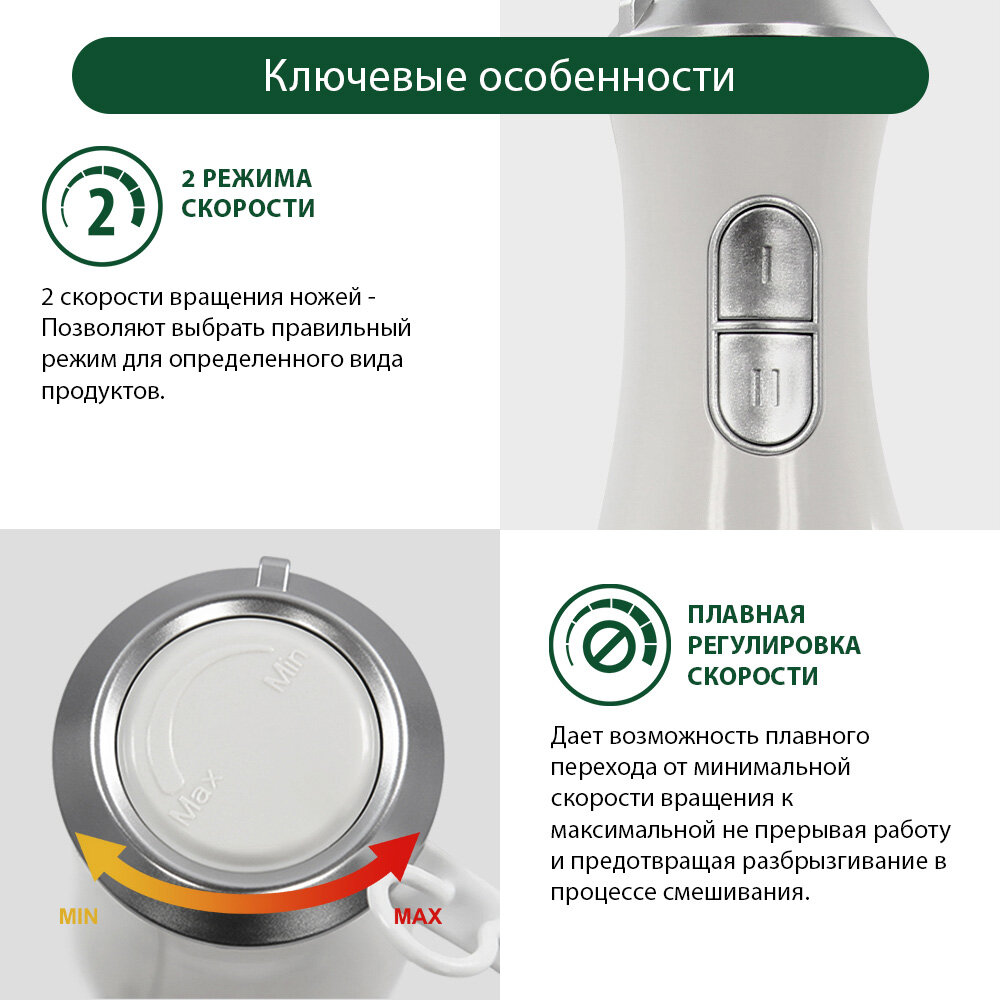 Погружной блендер MARTA MT-1574, белый жемчуг