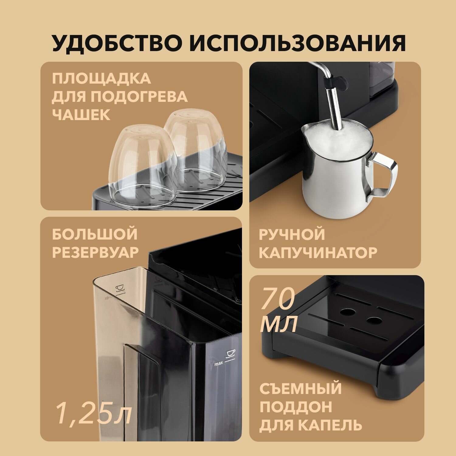 Кофемашина капсульная и рожковая Multicoffee inhouse, 2в1, автоотключение, чёрный 8 841 ₽