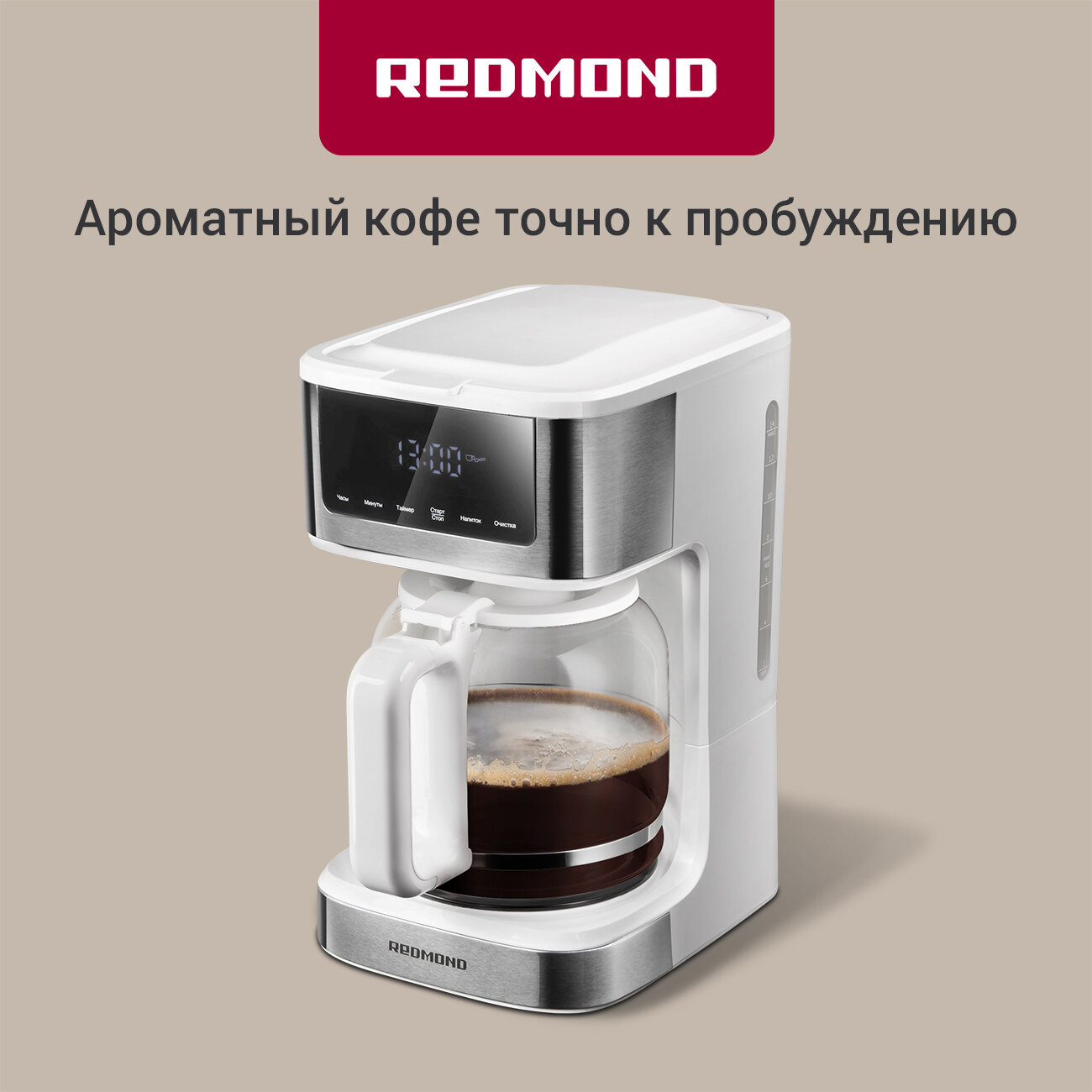 10 цен на Кофеварка капельная РЕДМОНД CM712, кувшин 1,7 л, сенсорное управление, автоподогрев, отложенный старт, режим айс-кофе