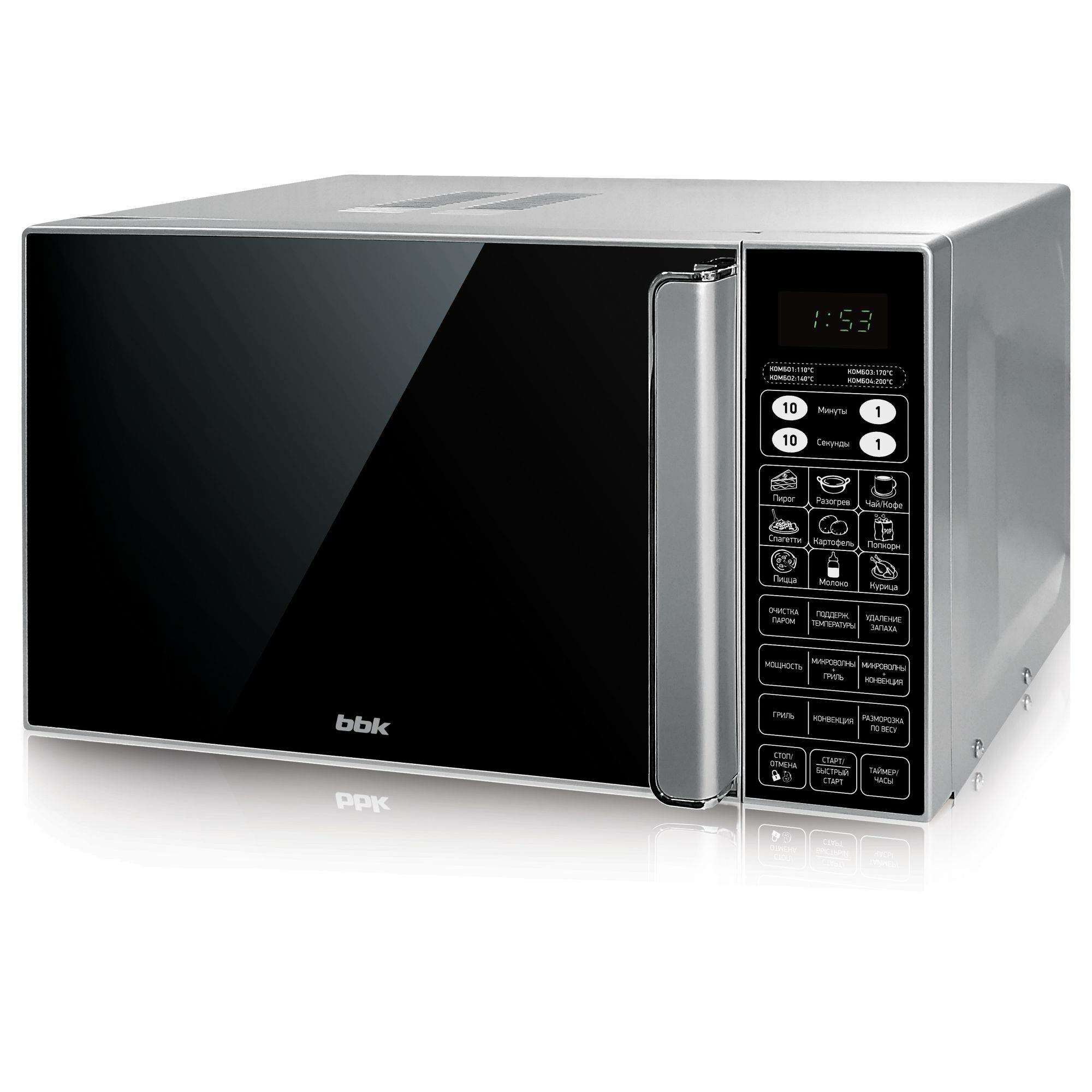 Микроволновая печь с грилем и конвекцией BBK 23MWC-982S/SB-M серебро/черный, объем 23 л, мощность 900 Вт информация: