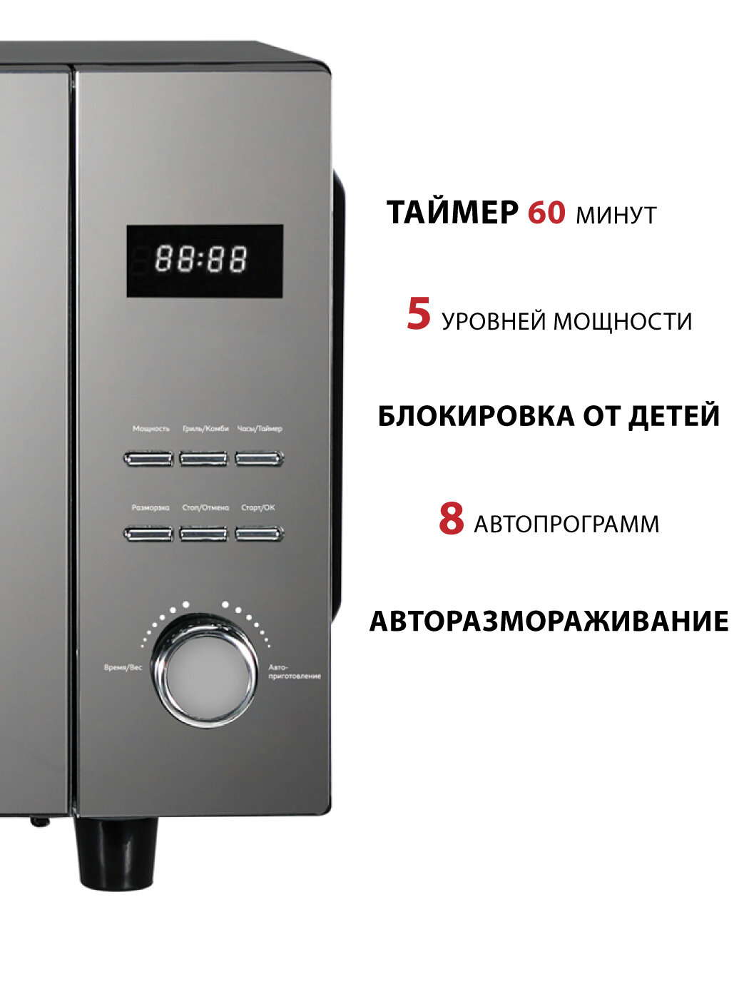 Микроволновая печь Pioneer MW360S 23 л с авторазмораживанием, грилем, таймером и часами, 5 уровней мощности, 2 года гарантии, 800 Вт информация: