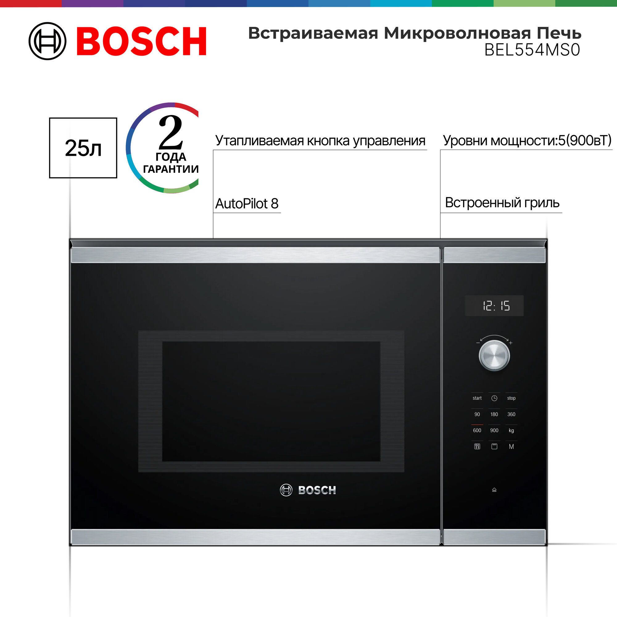10 цен на Встраиваемая микроволновая печь Bosch Serie 6 BEL554MS0 с объемом 25 литров, гриль, разморозка, дисплей, программ 8