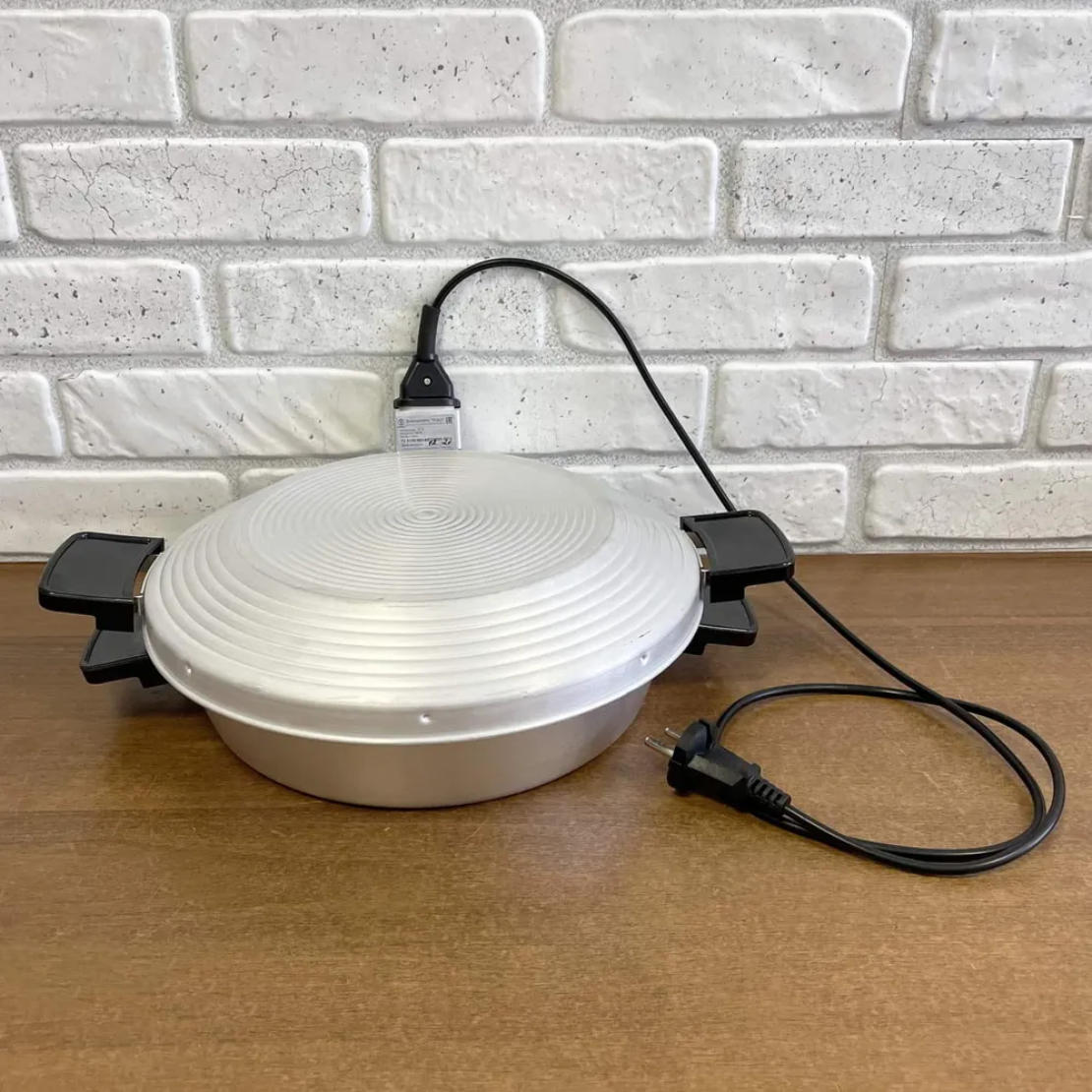 | Дополнительная информация | функции - разогрев, варка, тушение, выпекание; объем - 3,5 л; диаметр - 30 см; высота стенки - 10 см; материал - пищевой алюминий; нагревательный элемент - ТЭН; количество нагревательных элементов - 1; электропитание - сеть 220 В; мощность - 500 Вт; вес - 1,65 кг |