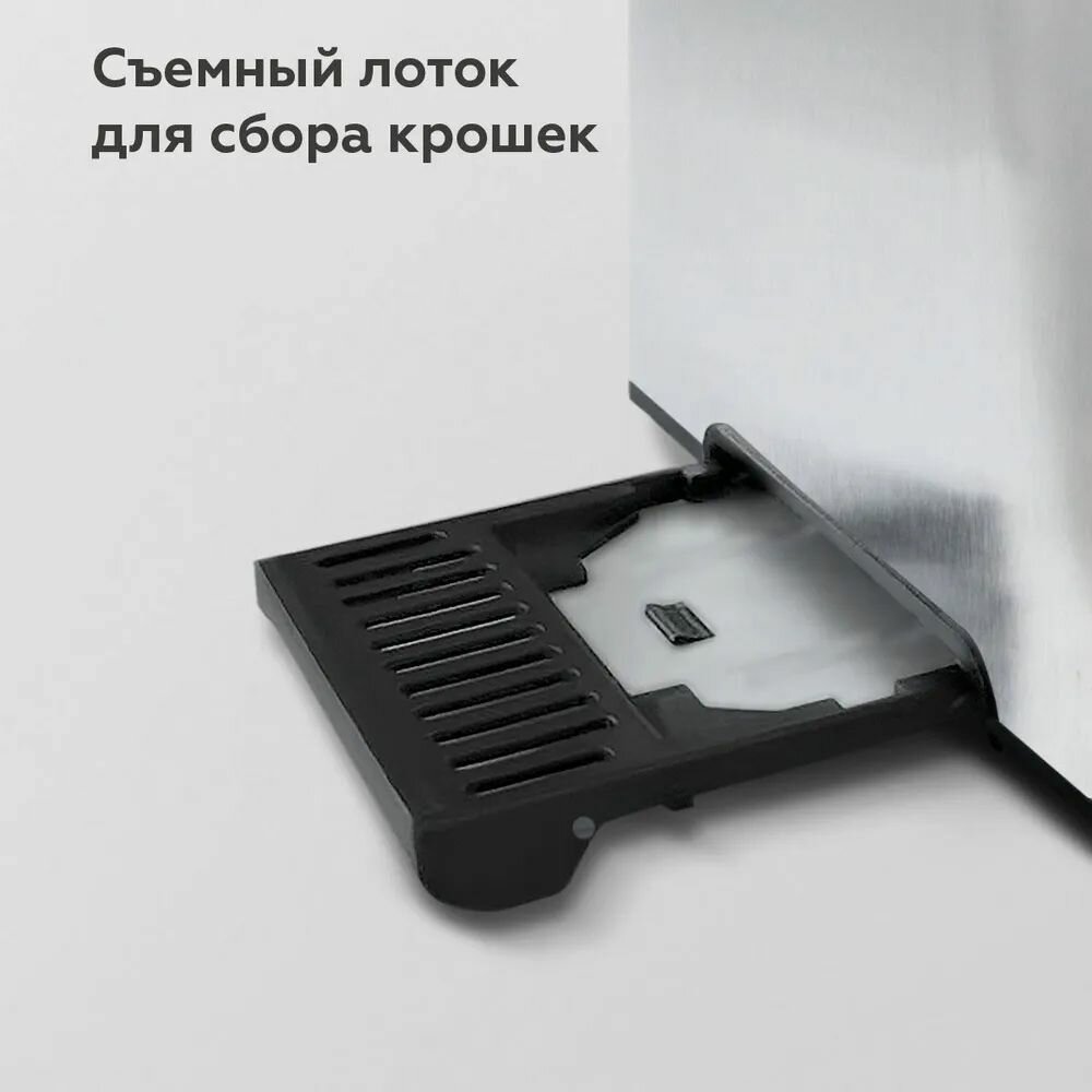 Тостер BQ T1009, 800 Вт, 7 режимов прожарки, 2 тоста, разморозка, серебристый 5 712 ₽
