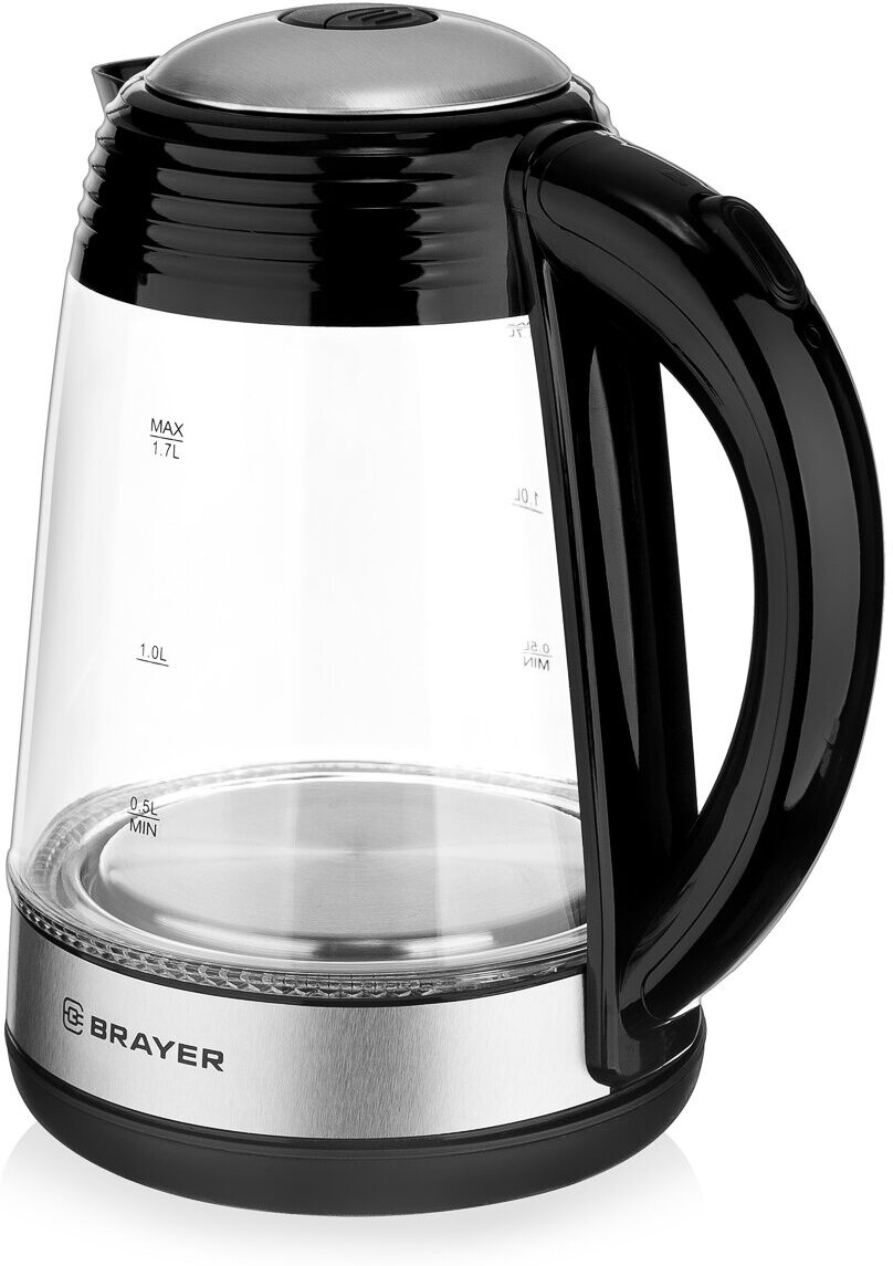 Чайник электрический BRAYER BR1012BK, стекло, 1.7 л, 2200 Вт, чёрно-серебристый 4 774 ₽