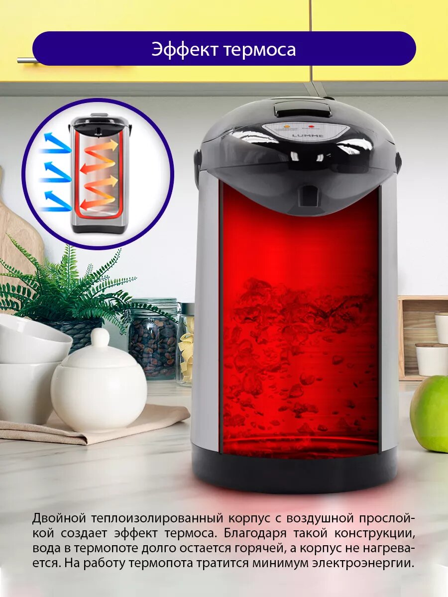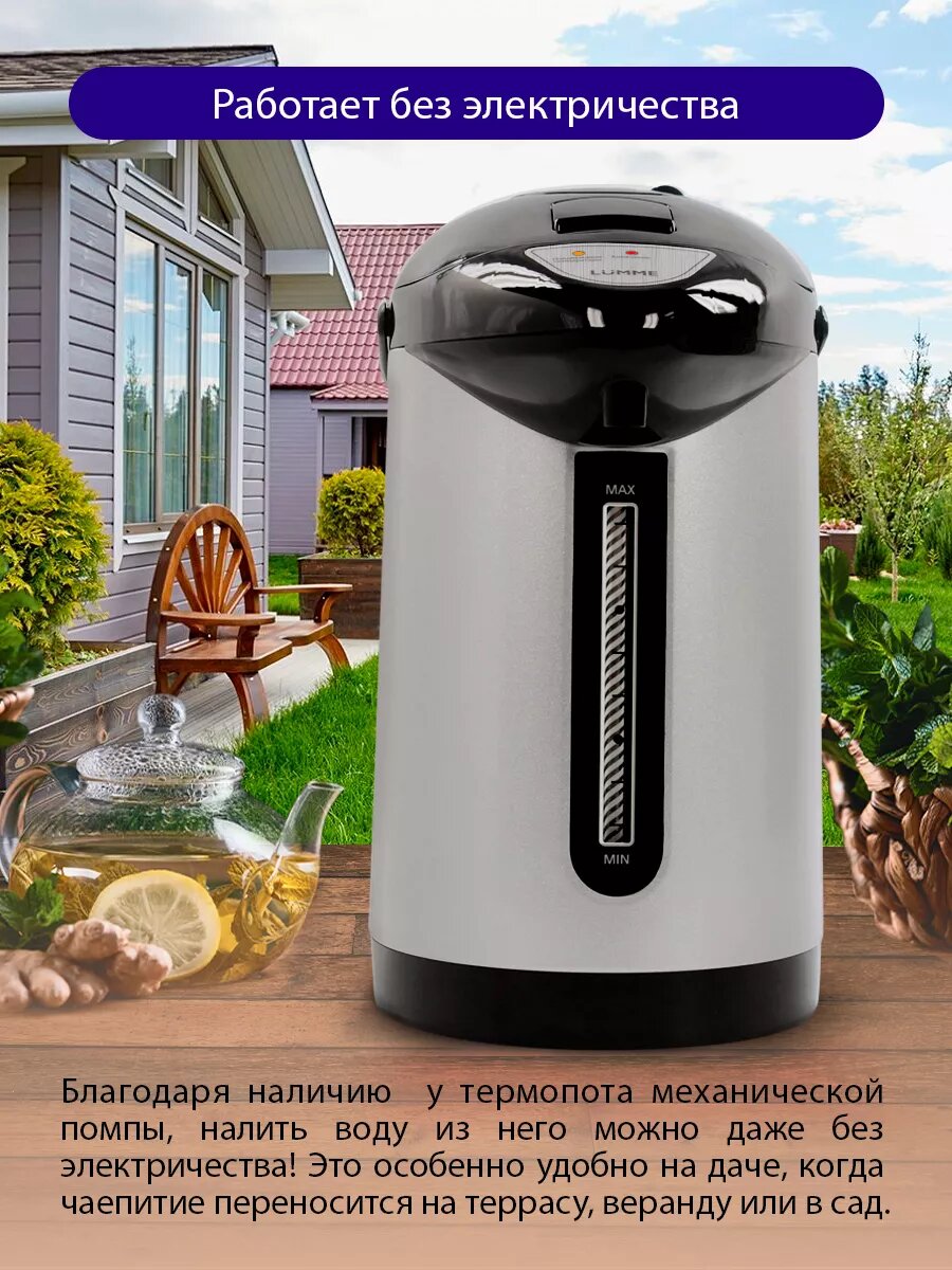 Термопот LUMME LU-3835 черный жемчуг электрический, ручная помпа 4 л информация: