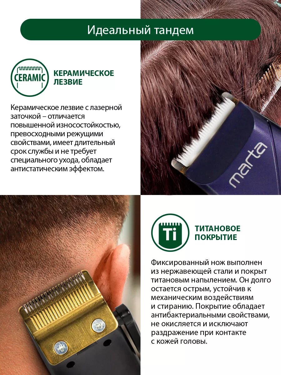 Машинка для стрижки MARTA MT-2220, лезвия титан, керамические, 4 настройки длины, черный 868 ₽