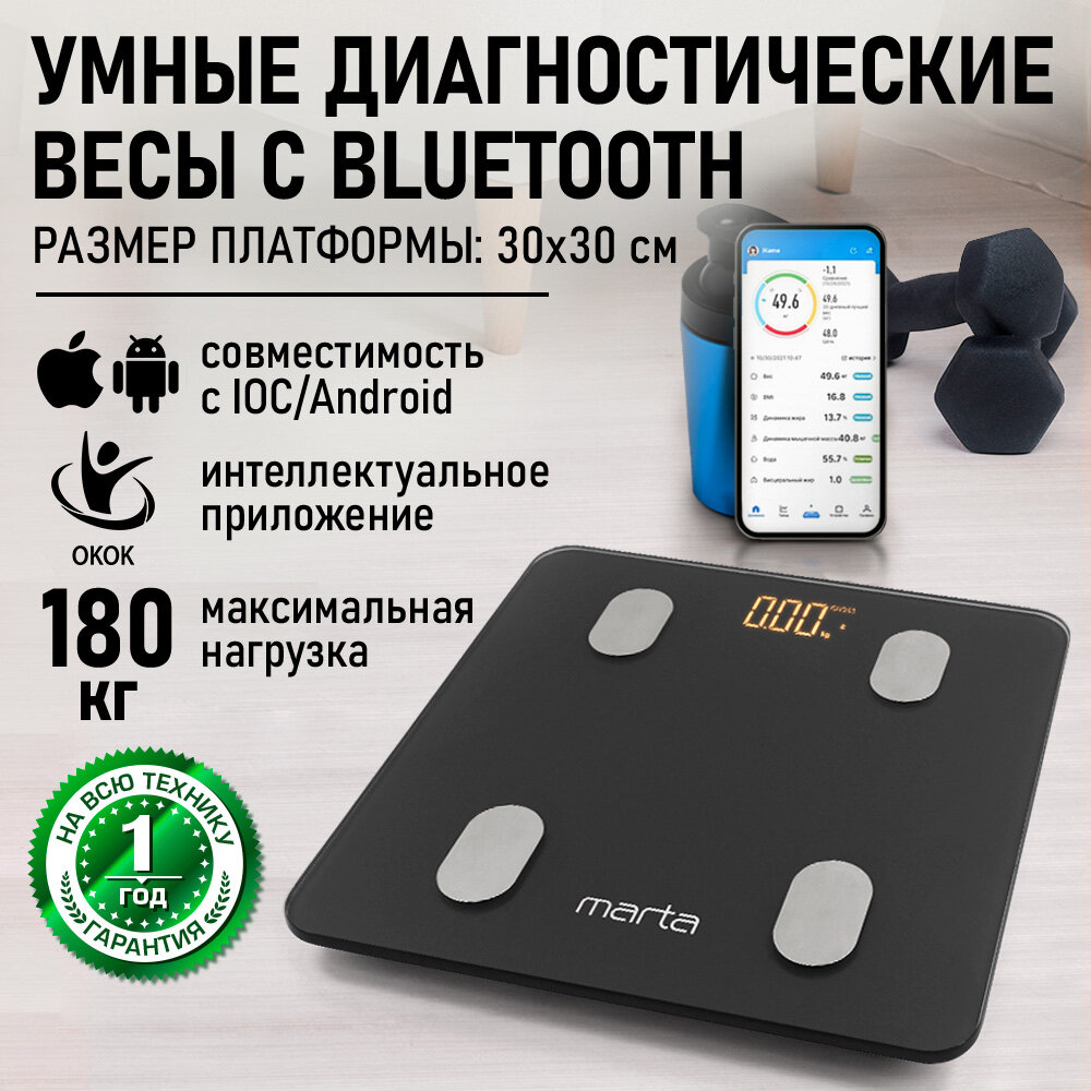 Весы напольные умные MARTA MT-1606 серый графит информация: