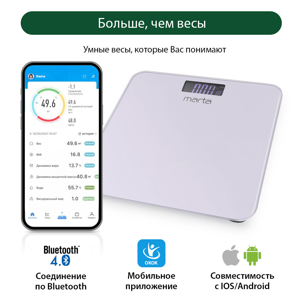 Мы выбрали 10 лучших цен на Весы напольные умные MARTA MT-1684 лиловый аметист. Перед тем как купить Весы напольные умные MARTA MT-1684 лиловый аметист посмотрите найденные предложения из Яндекс Маркета и других сайтов на основе XML фидов.