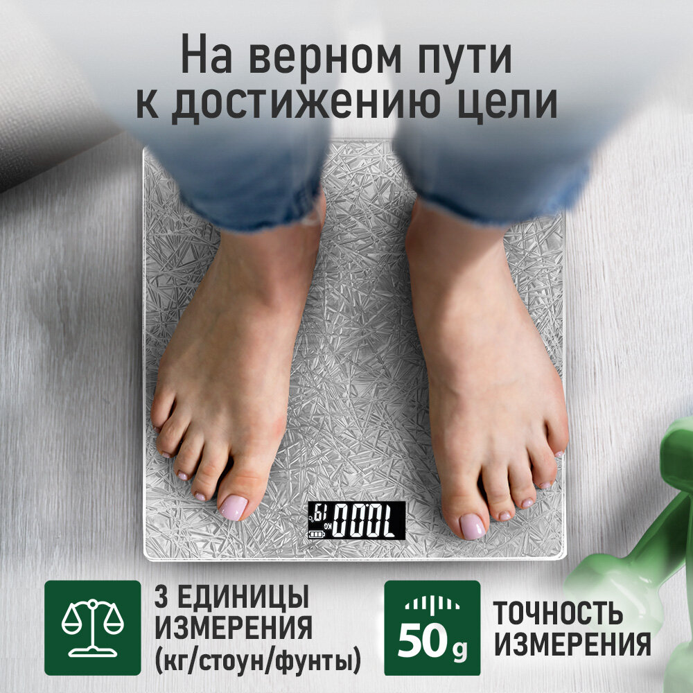 Весы напольные, электронные, диагностические, материал - пластик, стекло, точность - 50 г, вес до - 150 кг, GoodsMart, 1 шт.